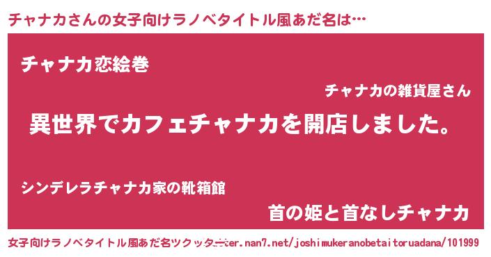| 男性向けラノベタイトル風あだ名 | 『誰もが恐れるあのチャナカが、ぼくの専属メイドになるようです。』 |
