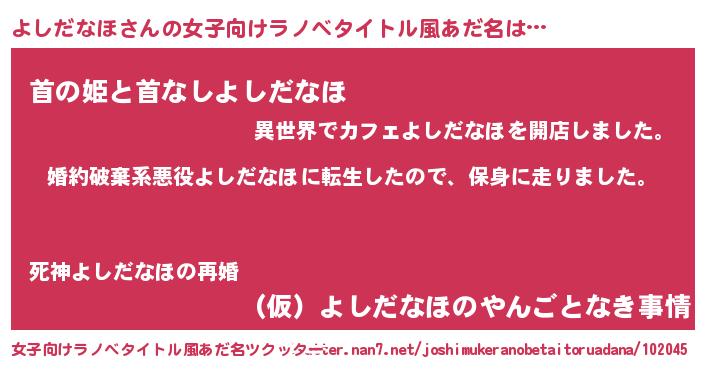 | 胡散臭い通販商品みたいなあだ名 | 『必ず成功する霊験あらたかなお札…その名も「よしだなほ」』 |