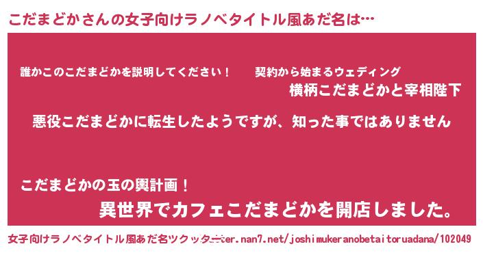 | 男性向けラノベタイトル風あだ名 | 『この素晴らしい世界にこだまどかを!』 |
