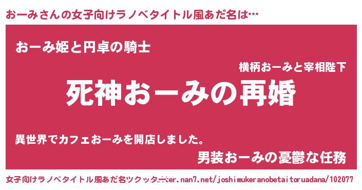 | 男性向けラノベタイトル風あだ名 | 『ノーゲーム・ノーオーミ』 |