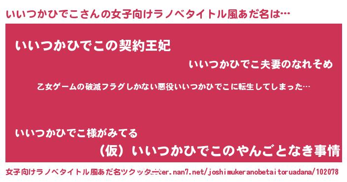 | 意味不明あだ名 | 『住所不定無職いいつかひでこ(93歳)』 |