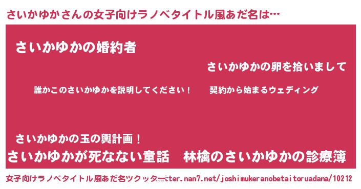 | 胡散臭い通販商品みたいなあだ名 | 『億万長者になれるブレスレット…その名も「さいかゆか」』 |