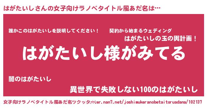 はがたいしさんの女子向けラノベタイトル風あだ名