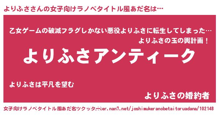 | 男性向けラノベタイトル風あだ名 | 『魔法科高校のよりふさ』 |