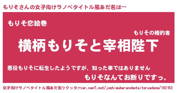 | ヒーロー風カッコイイあだ名 | 『慈愛の使者もりそ』『超時空戦士モリソ』 |