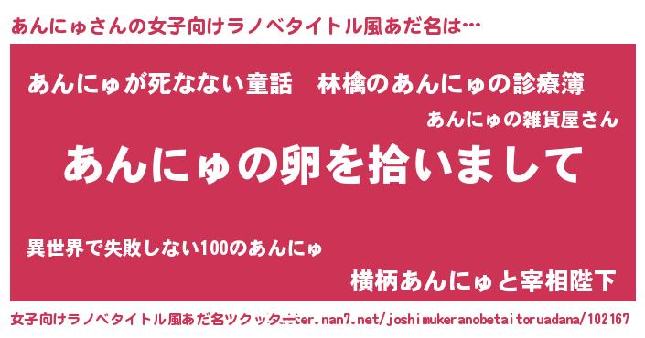| 意味不明あだ名 | 『とにかく怪しいあんにゅ』 |