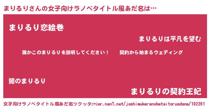 | 意味不明あだ名 | 『ペロリンまりるり』『永久保存まりるり』 |