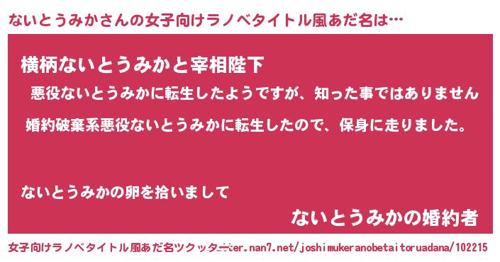 | 男性向けラノベタイトル風あだ名 | 『ナイトウミカスレイヤー』 |