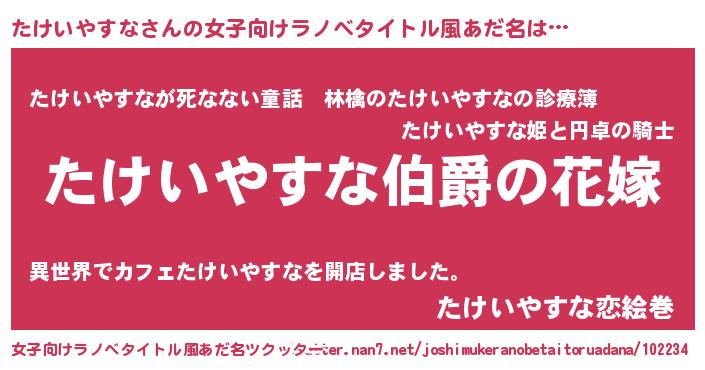 | 意味不明あだ名 | 『たけいやすなフォーエバー』 |