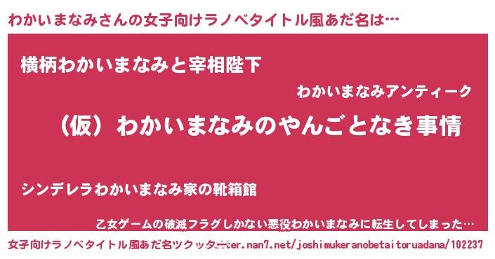| 男性向けラノベタイトル風あだ名 | 『わかいまなみの憂鬱』 |