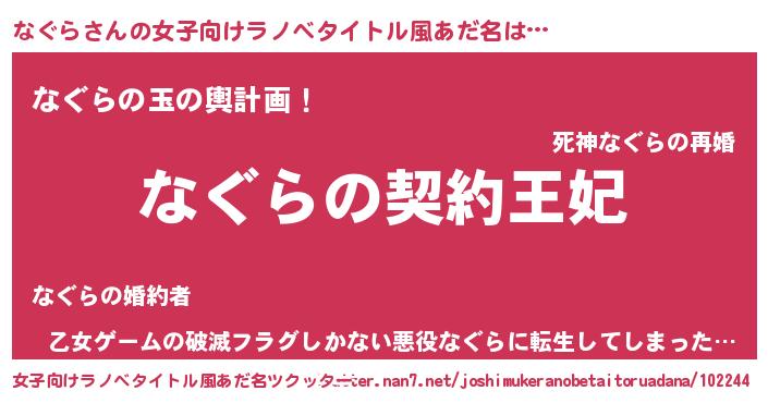 | 男性向けラノベタイトル風あだ名 | 『誰もが恐れるあのなぐらが、ぼくの専属メイドになるようです。』 |