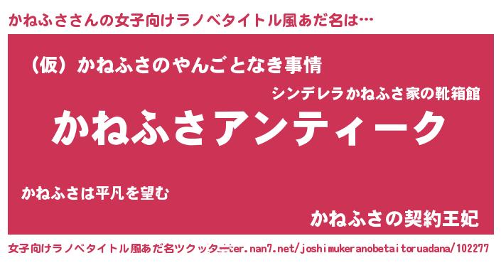| 肩書あだ名 | 『かねふさ総統』『かねふさ社長令嬢』 |