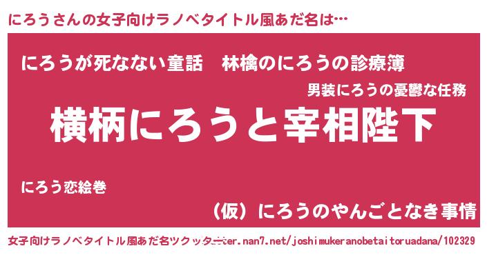 | 男性向けラノベタイトル風あだ名 | 『にろうに滅ぼされるだけの簡単なお仕事です』 |