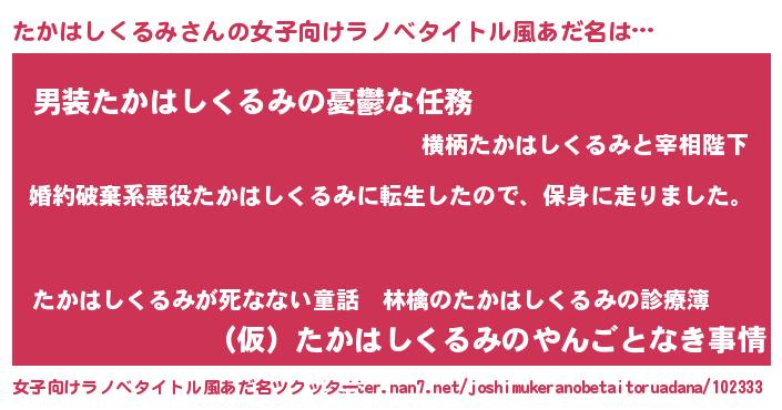 | 男性向けラノベタイトル風あだ名 | 『タカハシクルミスレイヤー』 |