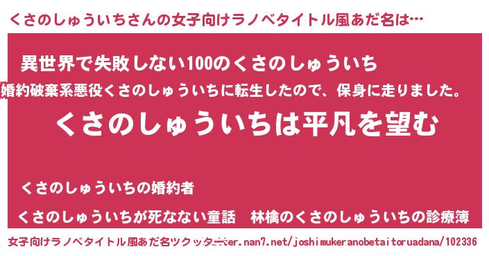 | 男性向けラノベタイトル風あだ名 | 『ダンジョンにくさのしゅういちを求めるのは間違っているだろうか』 |