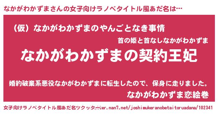 | 男性向けラノベタイトル風あだ名 | 『なかがわかずまという概念が存在しない退屈な世界 』 |
