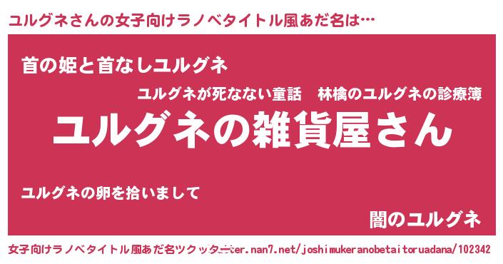 | 男性向けラノベタイトル風あだ名 | 『やはりユルグネの青春ラブコメはまちがっている 』 |