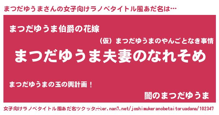 | 男性向けラノベタイトル風あだ名 | 『おまえをオタクにしてやるから、俺をまつだゆうまにしてくれ! 』 |