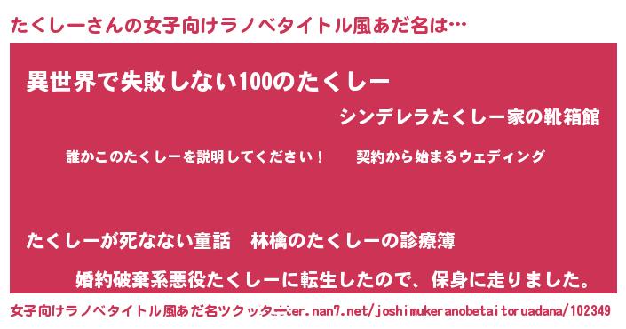 | 男性向けラノベタイトル風あだ名 | 『タクシーアートオンライン』 |