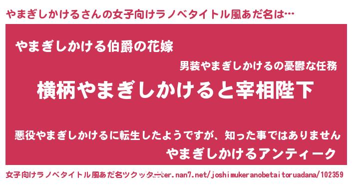 | 男性向けラノベタイトル風あだ名 | 『やまぎしかけるに滅ぼされるだけの簡単なお仕事です』 |