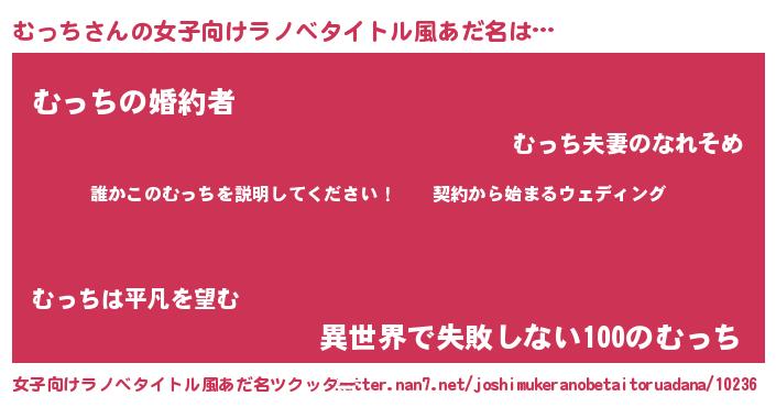 | 男性向けラノベタイトル風あだ名 | 『ムッチアートオンライン』 |