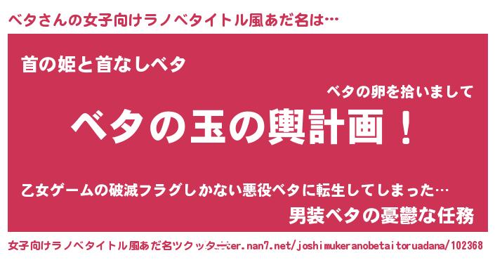 | 男性向けラノベタイトル風あだ名 | 『転生したらベタだった件』 |