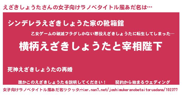 | 男性向けラノベタイトル風あだ名 | 『えざきしょうたに滅ぼされるだけの簡単なお仕事です』 |
