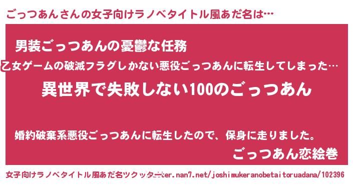| 男性向けラノベタイトル風あだ名 | 『ごっつあんという概念が存在しない退屈な世界 』 |