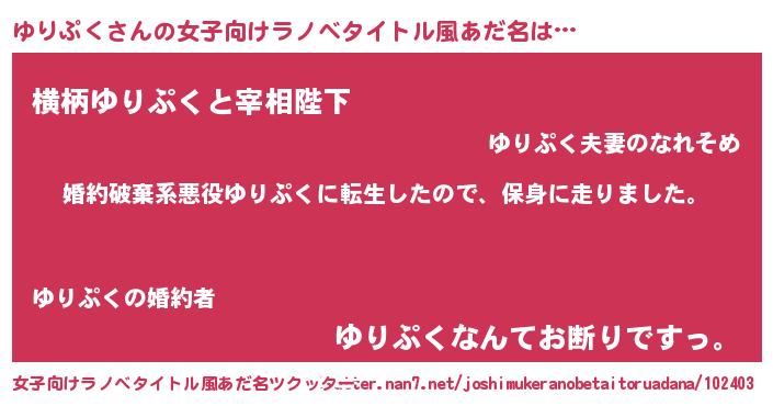 | 胡散臭い通販商品みたいなあだ名 | 『ガンによく効く高麗人参…その名も「ゆりぷく」』 |