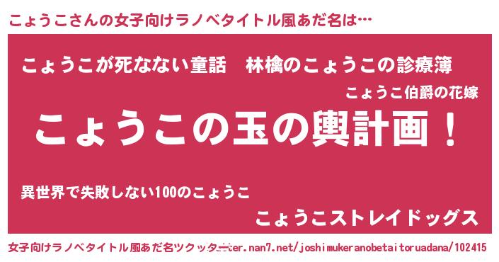 | ヒーロー風カッコイイあだ名 | 『仮面コョダー』『超時空戦士コョウコ』 |