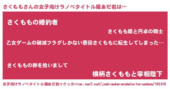 | 男性向けラノベタイトル風あだ名 | 『この素晴らしい世界にさくももを!』 |