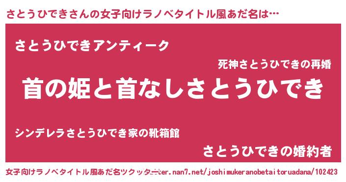 | 意味不明あだ名 | 『自称さとうひでき』 |