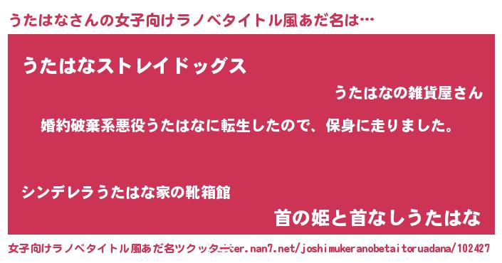 | 男性向けラノベタイトル風あだ名 | 『ウタハナスレイヤー』『緋弾のウタハナ』 |
