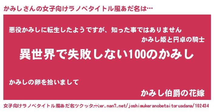 | 男性向けラノベタイトル風あだ名 | 『かみしという概念が存在しない退屈な世界 』 |