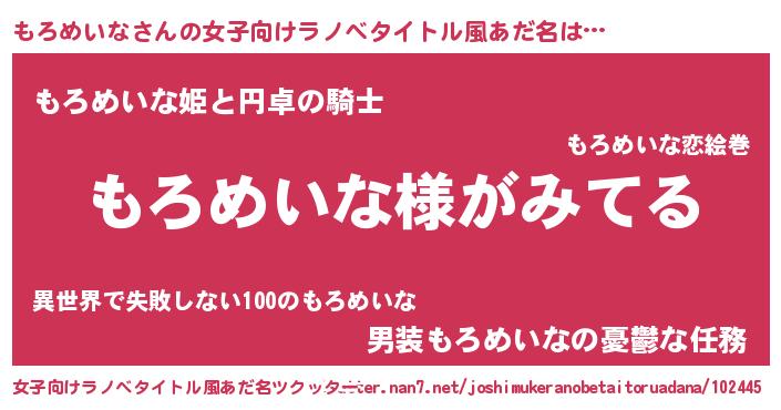 | 意味不明あだ名 | 『とにかく怪しいもろめいな』 |