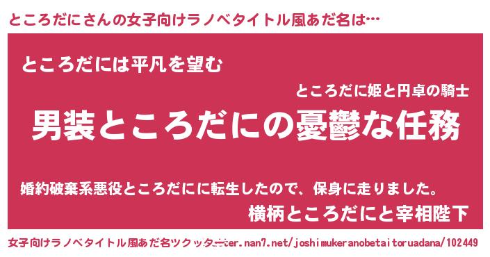 | 胡散臭い通販商品みたいなあだ名 | 『伝統あるサプリメント…その名も「ところだに」』 |
