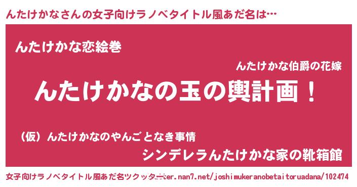 | 男性向けラノベタイトル風あだ名 | 『転生したらんたけかなだった件』 |
