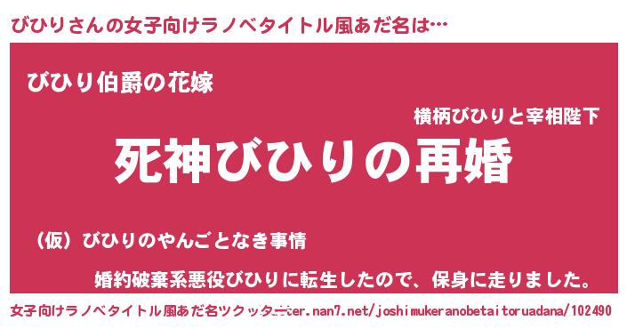 | 男性向けラノベタイトル風あだ名 | 『ノーゲーム・ノービヒリ』 |