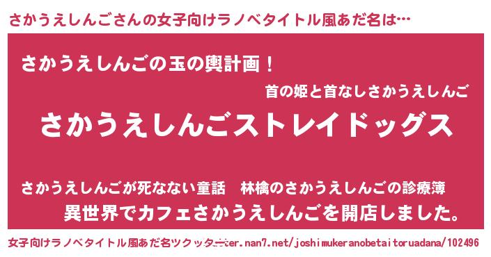 | 男性向けラノベタイトル風あだ名 | 『Re:さかうえしんごから始める異世界生活』 |