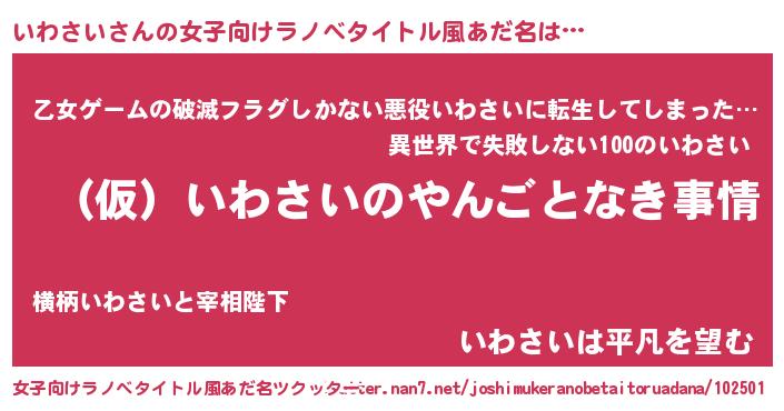| 男性向けラノベタイトル風あだ名 | 『いわさいの憂鬱』『魔弾の王といわさい』 |