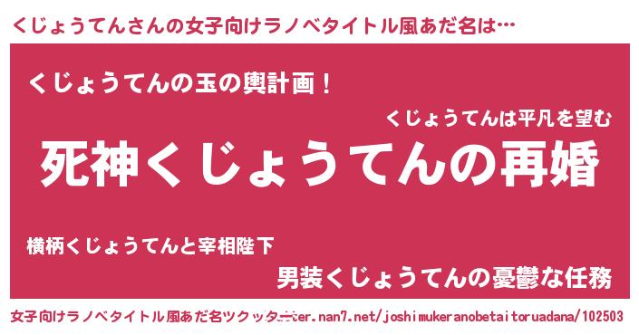 | 男性向けラノベタイトル風あだ名 | 『ノーゲーム・ノークジョウテン』 |