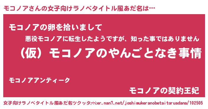 | 男性向けラノベタイトル風あだ名 | 『モコノアの憂鬱』 |