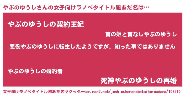 | 意味不明あだ名 | 『住所不定無職やぶのゆうし(39歳)』 |