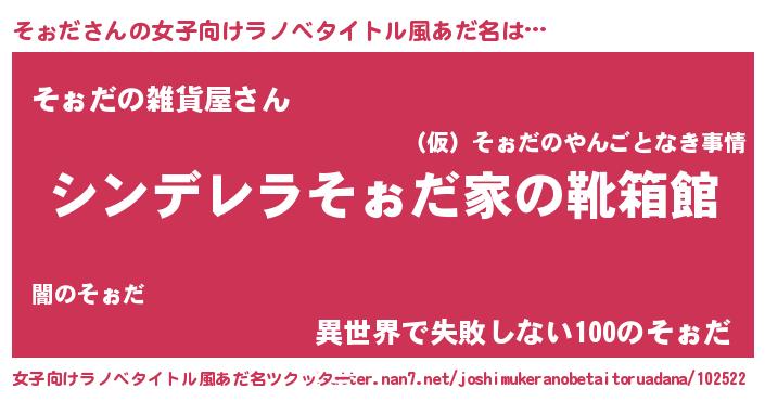 | 胡散臭い通販商品みたいなあだ名 | 『幸せが訪れる高級そうな絵画…その名も「そぉだ」』 |
