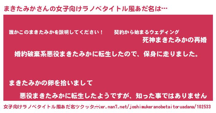 | 胡散臭い通販商品みたいなあだ名 | 『必ず成功する霊験あらたかなお札…その名も「まきたみか」』 |