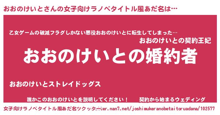 | 男性向けラノベタイトル風あだ名 | 『うちの娘の為ならば、俺はもしかしたらおおのけいとも倒せるかもしれない。』 |