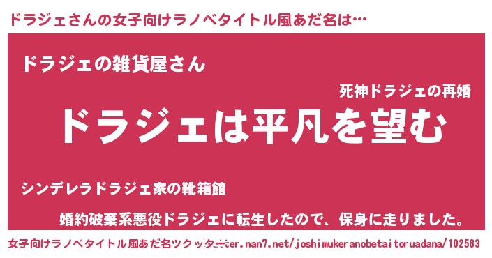 | 胡散臭い通販商品みたいなあだ名 | 『信頼と実績のサプリメント…その名も「ドラジェ」』 |