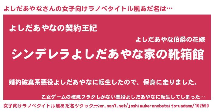 | 胡散臭い通販商品みたいなあだ名 | 『絶対に幸福をもたらす水素水…その名も「よしだあやな」』 |