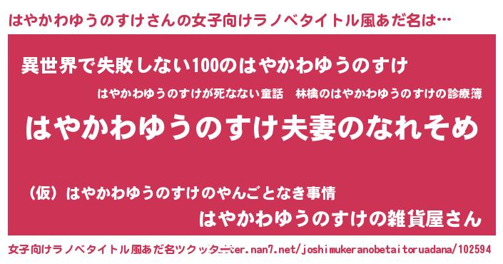 | 胡散臭い通販商品みたいなあだ名 | 『100人中100人が認めたイリジウム磁石…その名も「はやかわゆうのすけ」』 |