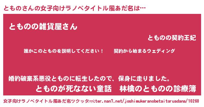 | ファンタジー風あだ名 | 『トモフェル』『エターナルトモノー』 |